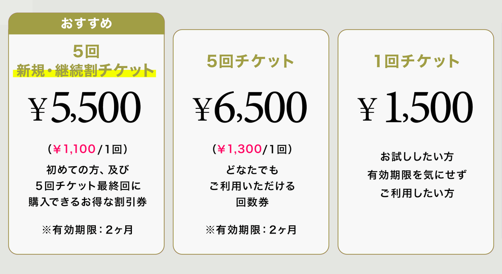 ¥5,500/5回[¥1,500/1回]※有効期限2ヶ月