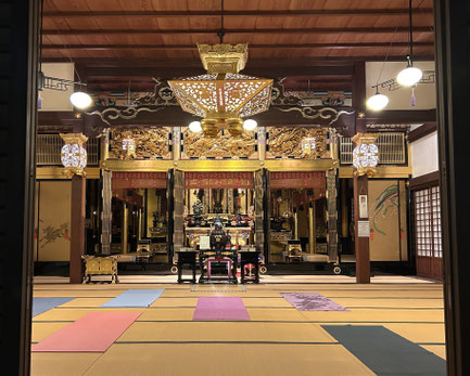 東京メトロ日比谷線・広尾駅から徒歩3,4分、商店街の一角にあり、アクセス抜群の上宮寺。登録有形文化財に指定されているご本堂にてヨガができるという、とても希少で贅沢な体験ができます。駅から近く、平日の夜開催ということもあり、仕事帰りの方々をはじめ、ご近所の方、わざわざこのご本堂でヨガをしたくて遠方から足を運ばれる方も。クラスの最後には、目を閉じたままお坊さんによる法話に耳を傾けるという、テラヨガだからこその体験をしていただけます。参加される年代は様々。ヨガが初めてという方もたくさんいらっしゃいますので、体が硬いと心配されている方や初心者の方も、どうぞ安心して足をお運びください。